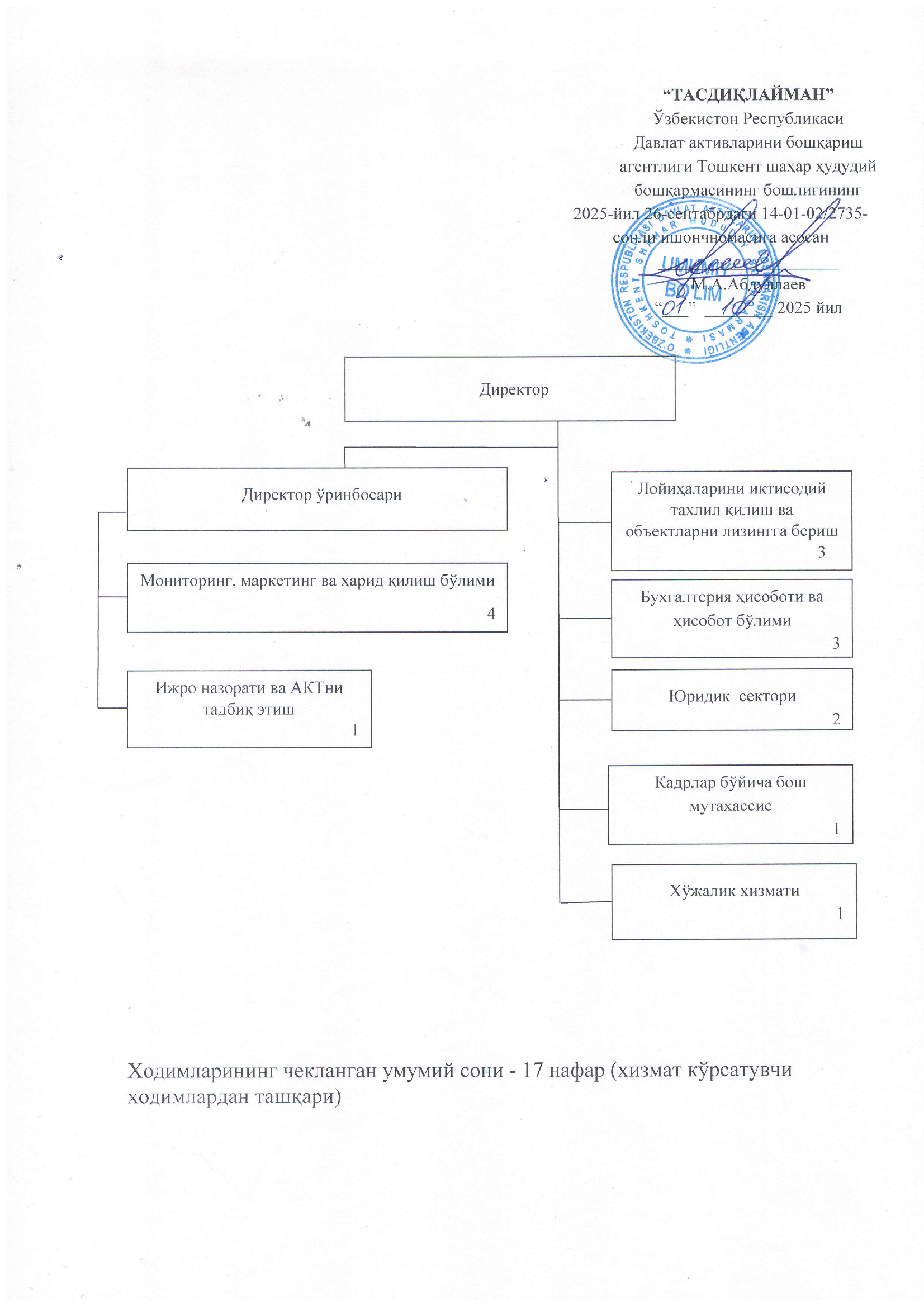 "O`zmеliоmаshlizing" mas'uliyati cheklangan jamiyatining ijro apparatining tuzilmasi